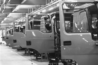 中秋国庆假期过后,中国重汽集团济南卡车股份有限公司铆足干劲忙生产。图为该公司的工人们正在车间内赶制出口订单。 中新社发 郝鑫城 摄