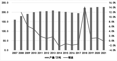 图1. 2007—2021年全球板栗产量和增速分布情况图 |
