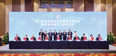 3月19日,第二届中国国际供应链促进博览会海南省推介会暨签约仪式在海南省海口市举行。在现场,海口国家高新区管理局、海南航空控股股份有限公司、海南省水产流通与加工协会等10家相关部门、重点企业和行业机构签约参展。