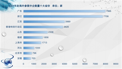 二是海外参展中企的行业仍集中于制造业领域。从2024年赴外参展企业行业分布来看,排名前10的依次是建材(6073家)、电子(4666家)、机械(4427家)、工艺品礼品(2692家)、五金(2626家)、汽车配件及售后(2321家)、化工(2232家)、工程机械及配件(2051家)、照明(1886家)、电工(1832家)。在细分行业中,排名前10的依次是其他电子(2863家)、塑料(1223家)、玩具礼品(1158家)、其他照明(1023家)、其他五金(845家)、建筑玻璃(840家)、其他汽车配件(816家)、其他工艺品礼品(784家)、家用电器(783家)、医疗设备(738家)。由此可见,制造型企业仍是中企海外参展的主力军。一方面,这些行业本身就是中国的传统优势行业,行业基础好;另一方面,制造业产品具有广泛的市场需求和应用场景,通过参展,企业能够更好地了解国际市场的趋势和需求,展示自身产品质量和技术实力,拓展销售渠道,提升在全球产业链中的地位,推动制造业的国际化发展。
