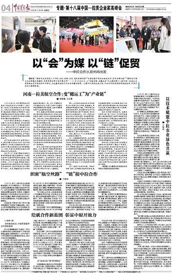 11月3日,第十八届中拉企业家高峰会期间,作为专题活动之一的中拉航空枢纽及跨境电商专题对话会在郑州举行。此次活动邀请了包括墨西哥驻华使馆商务参赞圣地亚哥·托莱多、中豫航空集团货运公司总经理谷长宝在内的200余名中拉嘉宾,聚焦中拉航空货运合作,共商中拉跨境电商、产业链供应链合作新路径。