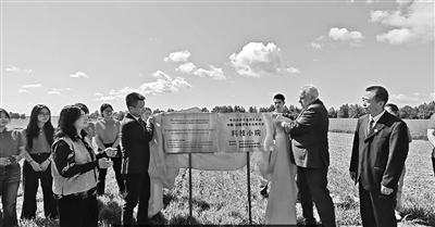 | 2025年6月4日,西北农林科技大学副校长刘天军和白俄罗斯国立农业科学院科研副校长尤里等人共同为中国-白俄罗斯农业现代化科技小院揭牌,这是中国首个海外农业科技示范平台。图片来源:西北农林科技大学农学院 |