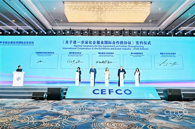 1月22日,2026年中国会展经济国际合作论坛(CECFO)在武汉举办。在成果发布环节,中国贸促会与国际展览业协会(UFI)、国际展览与项目协会(IAEE)、独立组展商协会(SISO)、国际大会及会议协会(ICCA)四家国际会展组织续签合作协议。