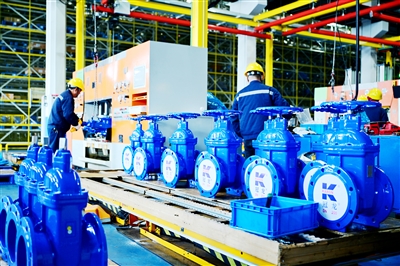 马年春节临近,江苏省海安市众多企业开足马力抓生产、赶订单、抢市场、拓销路,力争实现首季“开门红”。图为位于海安高新区的江苏融通阀门机械有限公司生产车间内,工人们忙着加工、装配、包装阀门,智能机器人精准运送零部件,一派热火朝天的繁忙景象。