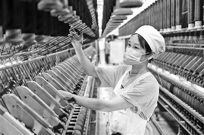 近年来,安徽省亳州市不断优化营商环境,大力发展纺织服装产业,带动当地群众就业,为地方经济高质量发展注入强劲动力。图为亳州市利辛县工业园区安徽翰联色纺股份有限公司,纺织工人在生产车间里赶制订单,一派忙碌景象。